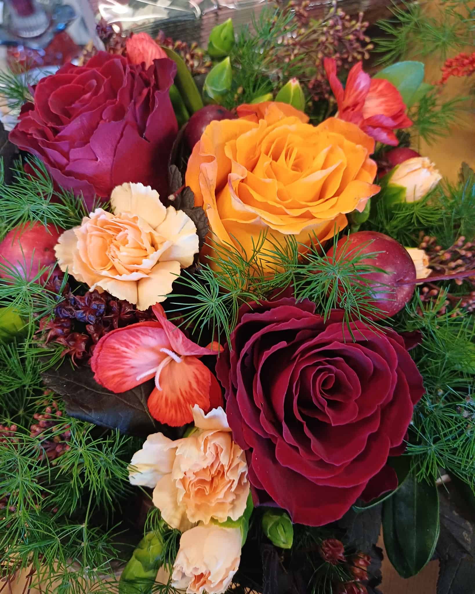Vi lager både buketter, dekorasjoner, hjerter, kranser og hva dere måtte ønske til begravelser.
